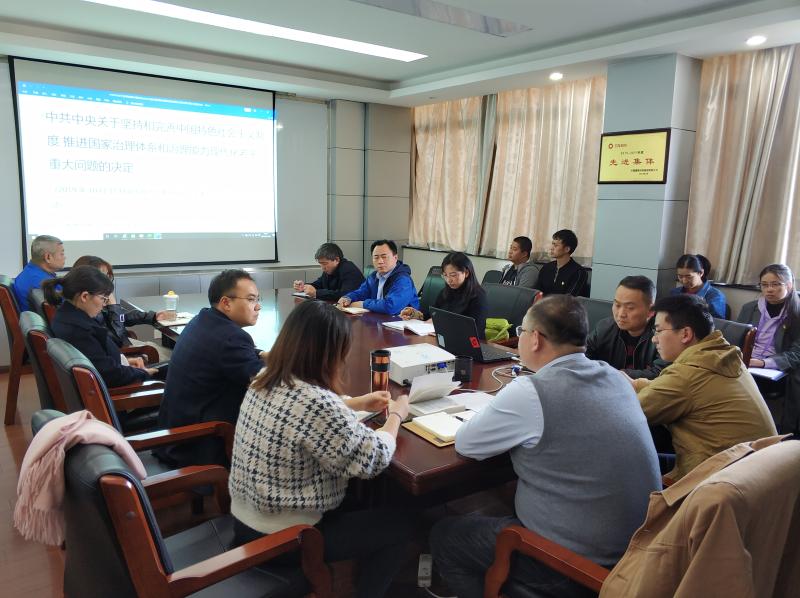 會(huì)議上,孫峻同志系統(tǒng)介紹了十九屆四中全會(huì)召開(kāi)的詳細(xì)信息,帶領(lǐng)各位黨員重點(diǎn)學(xué)習(xí)《中共中央關(guān)于堅(jiān)持和完善中國(guó)特色社會(huì)主義制度 推進(jìn)國(guó)家治理體系和治理能力現(xiàn)代化若干重大問(wèn)題的決定》和《習(xí)近平:關(guān)于〈中共中央關(guān)于堅(jiān)持和完善中國(guó)特色社會(huì)主義制度推進(jìn)國(guó)家治理體系和治理能力現(xiàn)代化若干重大問(wèn)題的決定〉的說(shuō)明》,并結(jié)合近期國(guó)內(nèi)外政治經(jīng)濟(jì)形勢(shì)及重大事件,詳細(xì)闡述了全會(huì)《決定》的具體內(nèi)容。